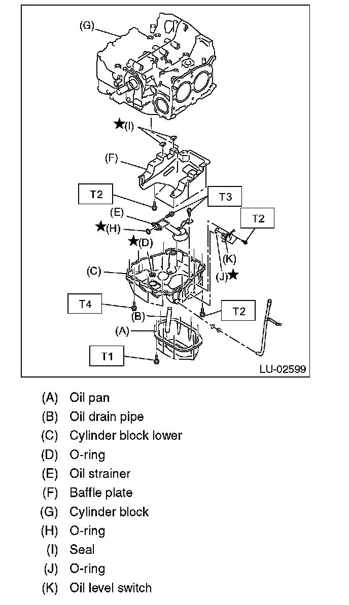 Check that the oil pan, oil strainer and baffle plate do not have deformation, cracks or damage.
