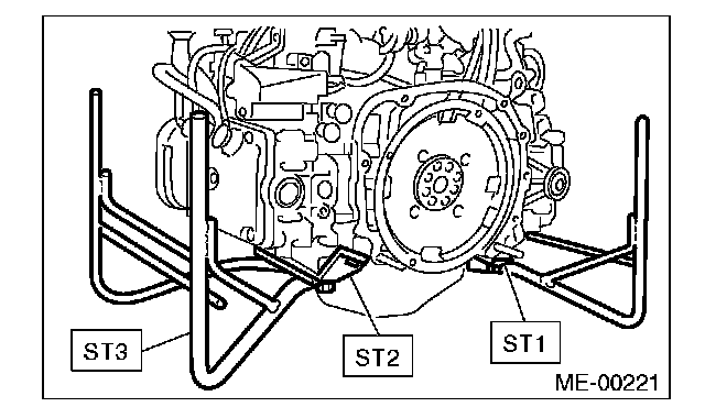 1) After removing the engine from vehicle body, attach the ST to the engine as shown in the figure.