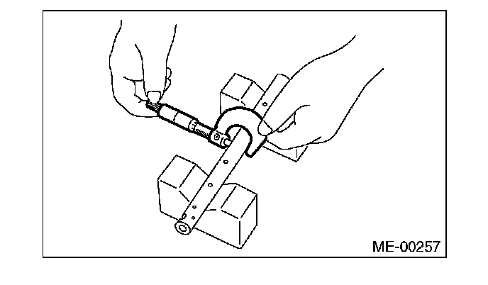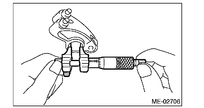 1) Measure the inner diameter of valve rocker arm and outer diameter of valve rocker shaft, and confirm the difference (oil clearance) between the two values.