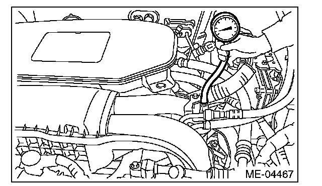 2) Disconnect the brake booster vacuum hose from the intake manifold, and attach the vacuum gauge.