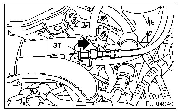 2. Attach ST to the fuel delivery pipe and push ST in the direction of arrow mark to disconnect the fuel delivery hose.