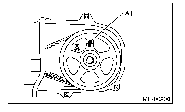 When the arrow mark (A) on cam sprocket LH is at the top position, the #1 cylinder piston is at top dead center of the compression stroke.