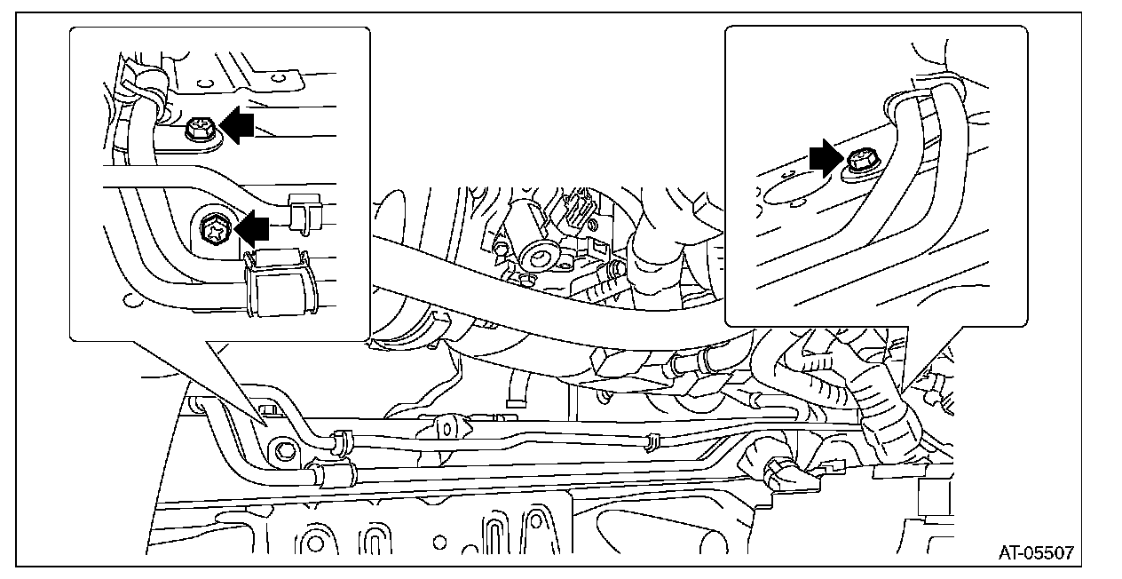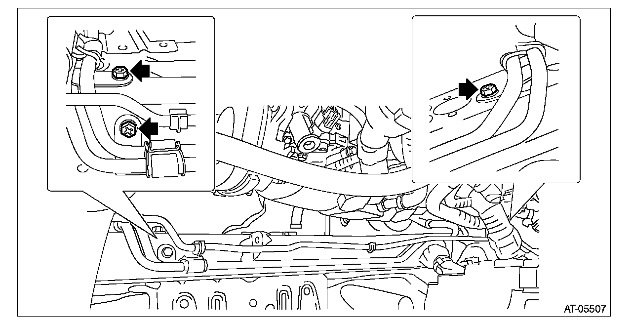 10) Remove the CVTF cooler pipe assembly mounting bolt.