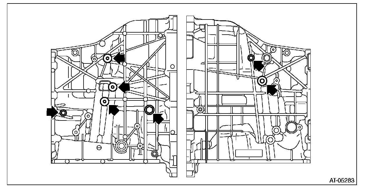 5) Apply liquid gasket seamlessly to the mating surface of transmission case.