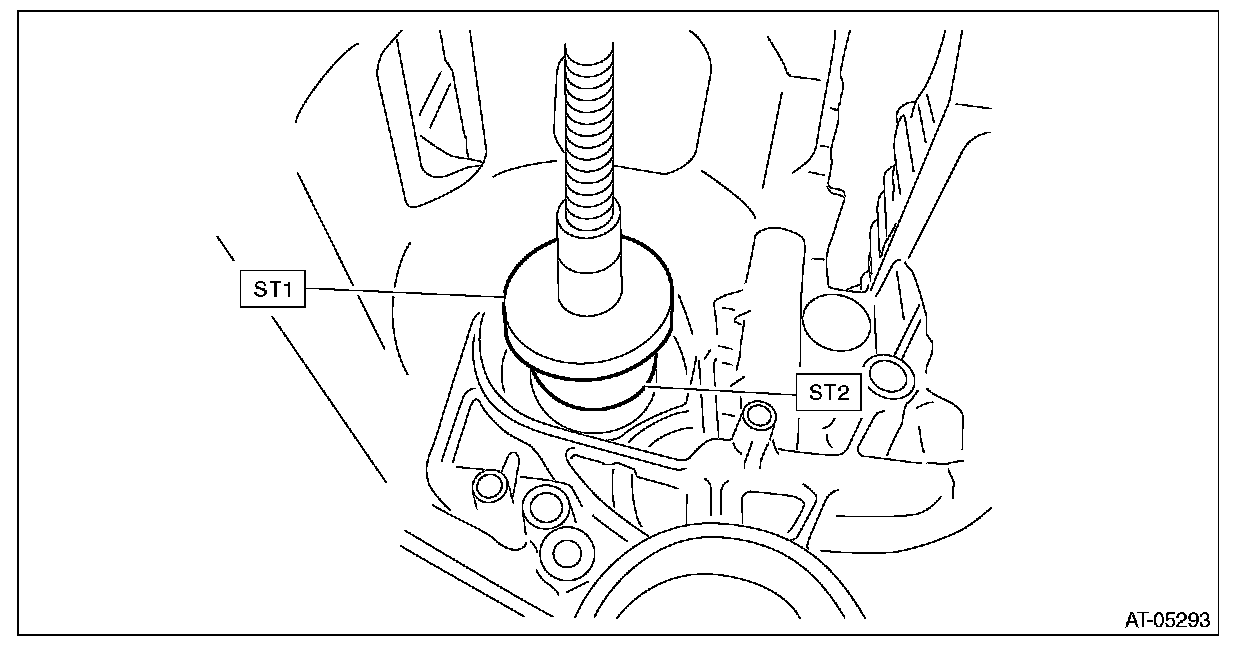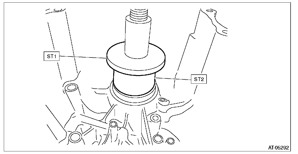 5) Using ST1 and ST2, install the roller bearing on secondary pulley side.