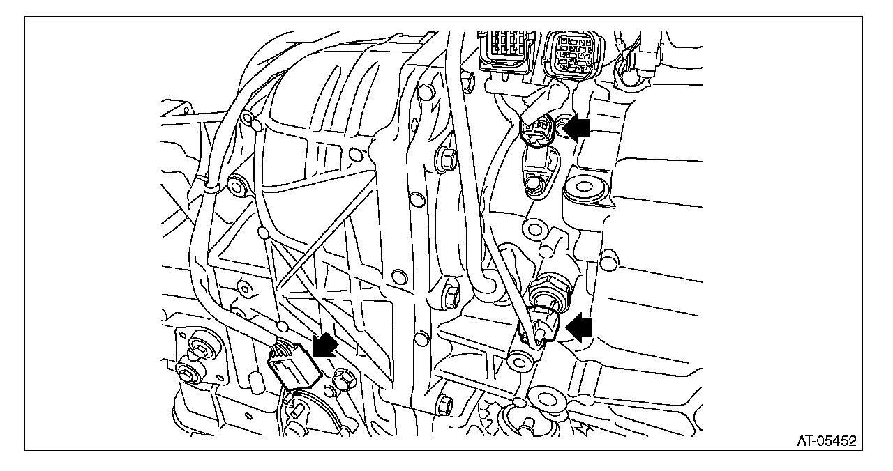 4) Remove the harness connectors from inhibitor switch, primary speed sensor and secondary pressure sensor.