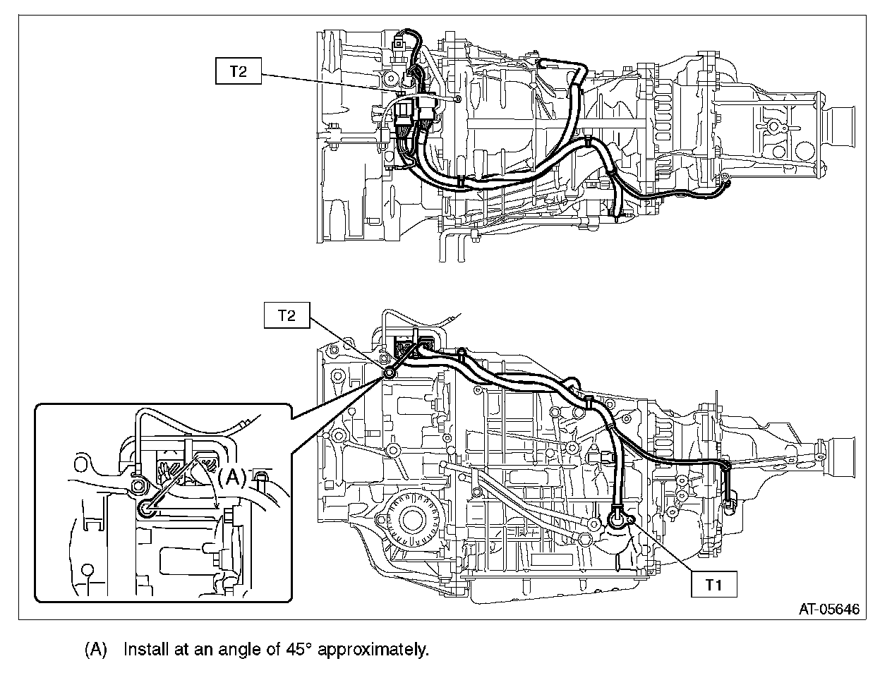 ^ Do not impact or bend the transmission harness because it has the oil temperature sensor inside.