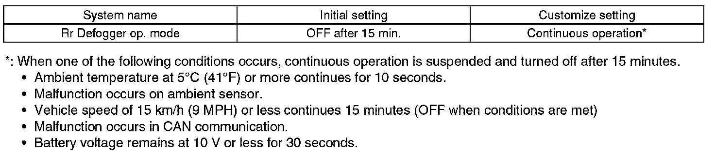 - Rr Defogger op. mode setting -> Initial setting or customize setting.
