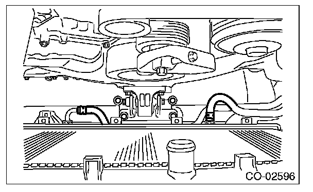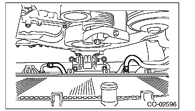 3) Remove the radiator cap, fill the radiator with engine coolant, and then install the radiator cap tester to the filler neck of radiator.