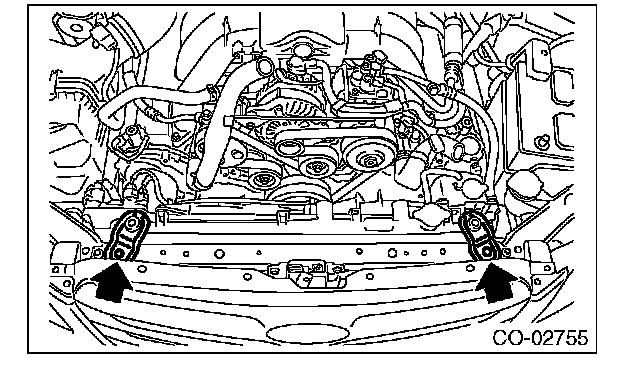 Insert pins on the lower side of radiator into the radiator lower cushions on vehicle side.