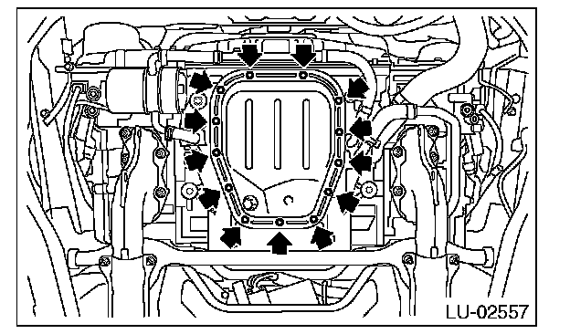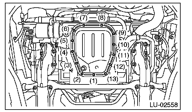 2) Tighten the oil pan lower installing bolts in the numerical order as shown in the figure.