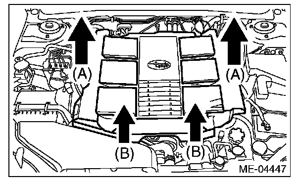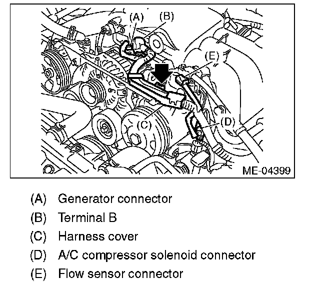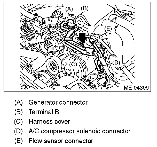 9. Disconnect the engine harness connector (B).