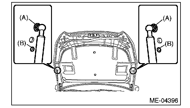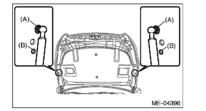 7) Change the bolt mounting position from (A) to (B), and completely open the front hood.
