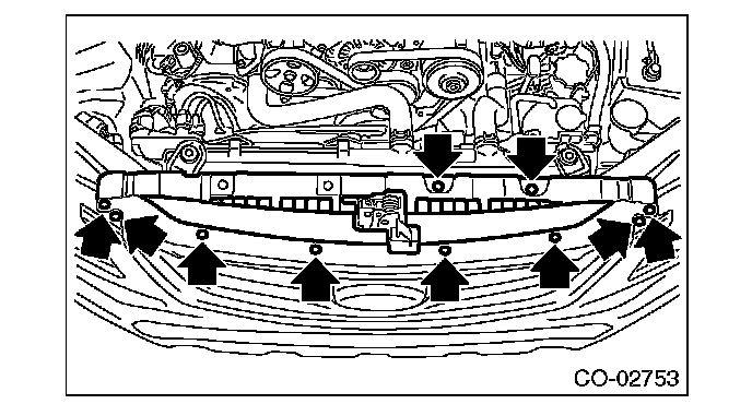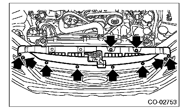 Remove ten clips when removing the grille bracket.