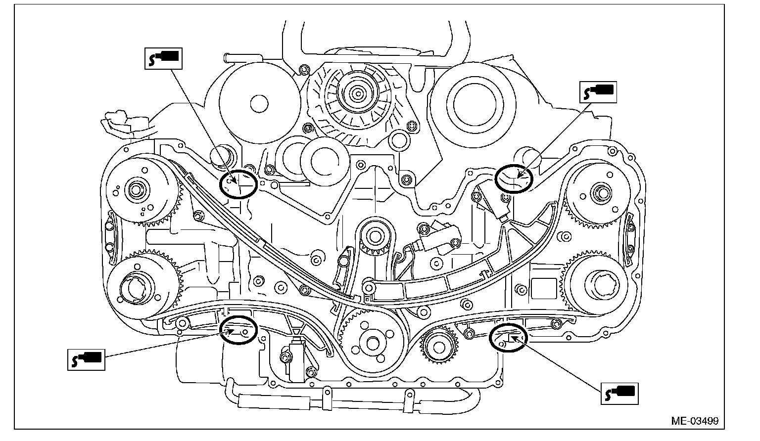 26) Make sure there is no oil leaks in the chain cover mating surface.