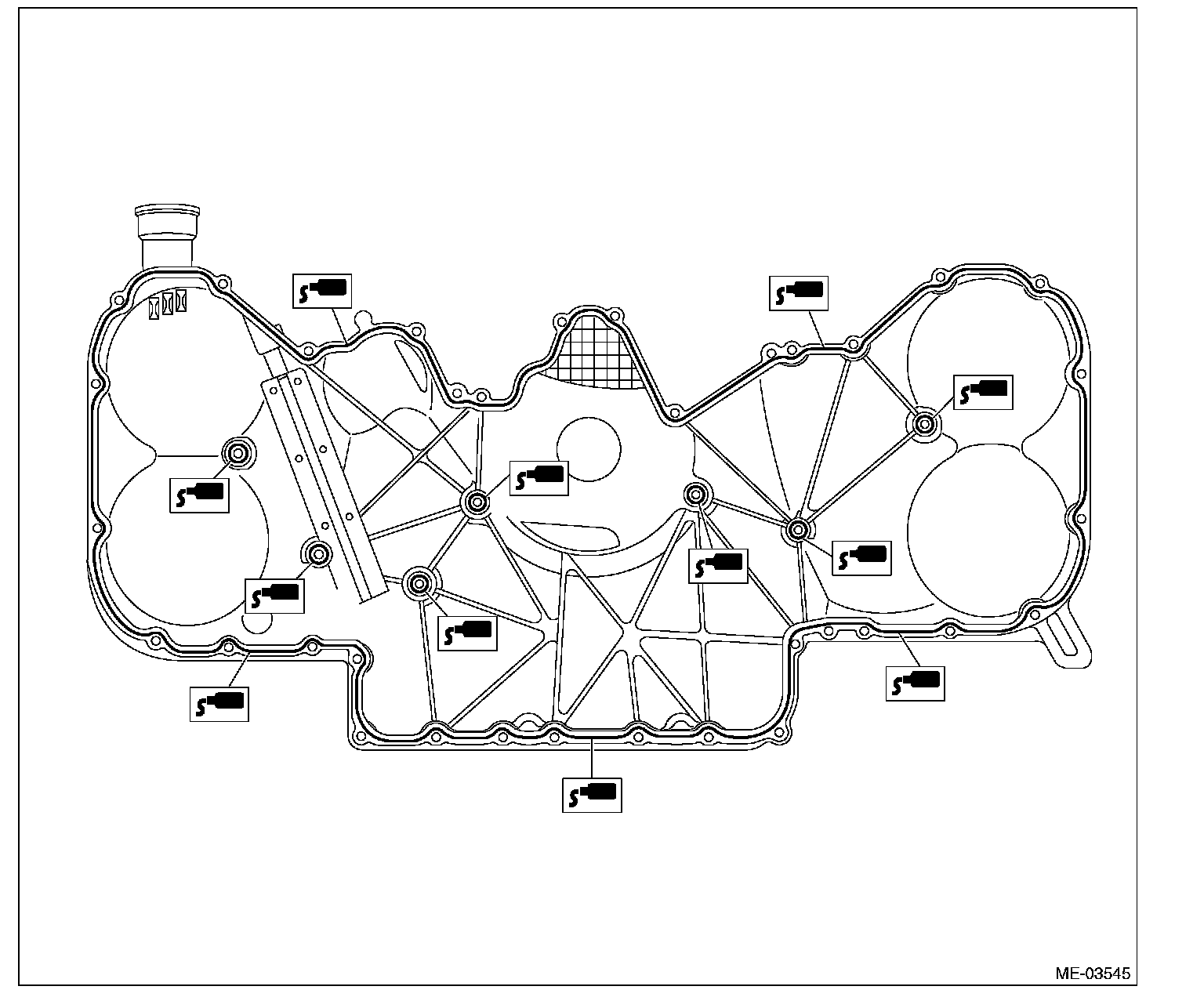 Install within 5 min. after applying liquid gasket.