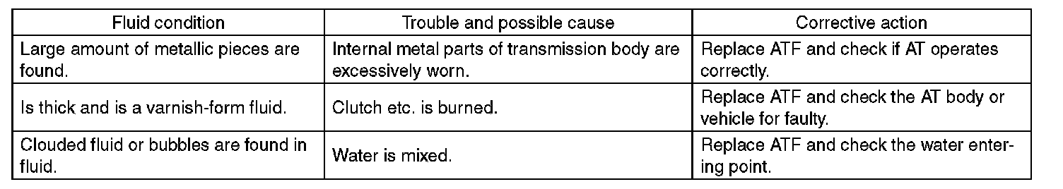 When replacing ATF, check the inside condition of transmission body by inspecting the drained ATF.