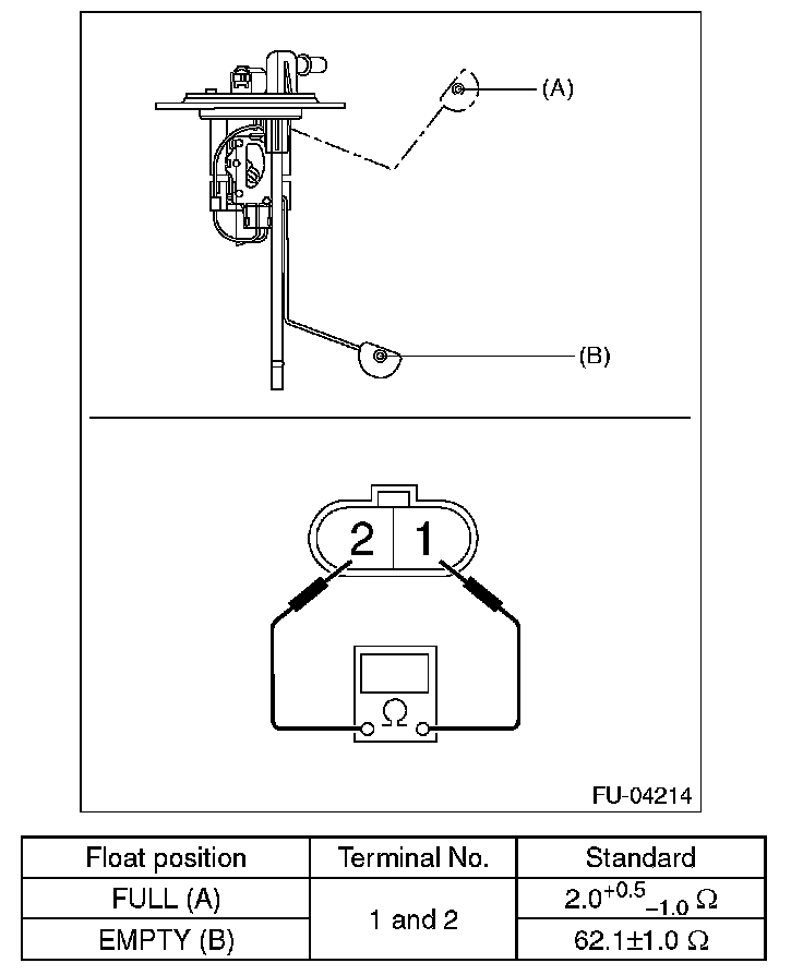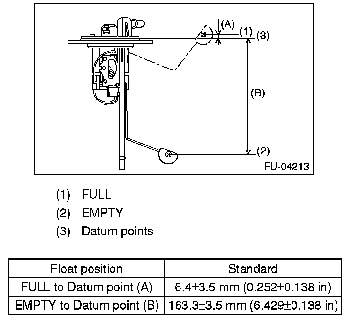 Measure the fuel sub level sensor float position.