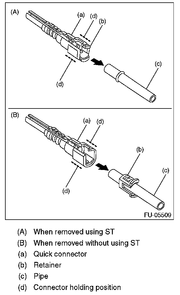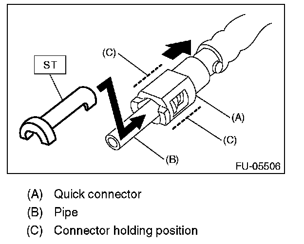 1. Attach ST to the pipe and push ST in the direction of arrow mark to disconnect the quick connector.