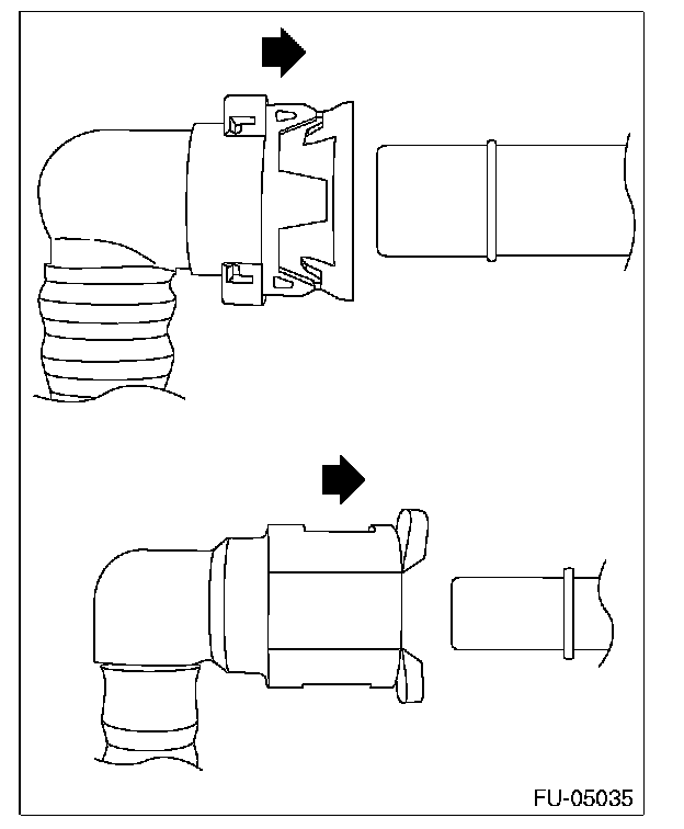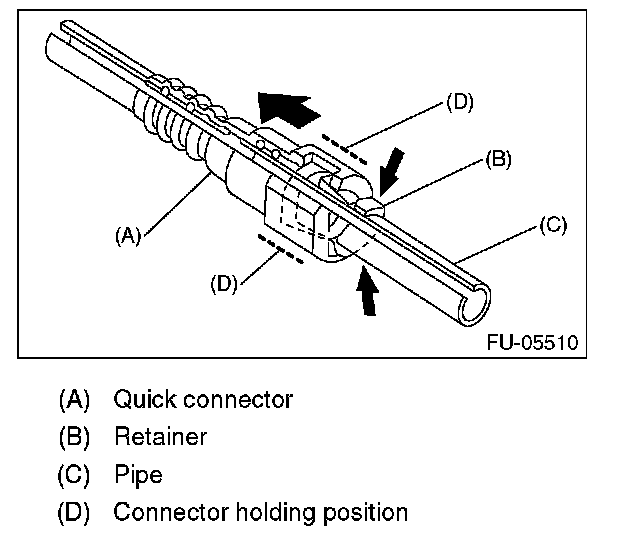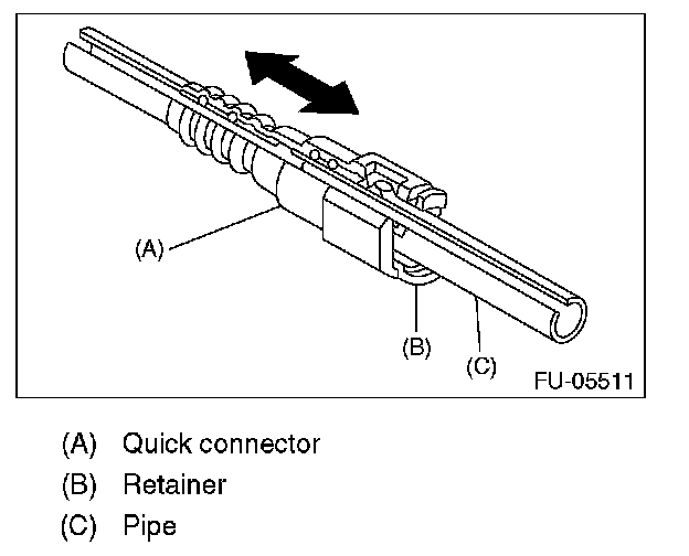 1. Push the retainer in the direction of the arrow, disconnect the quick connector from pipe.
