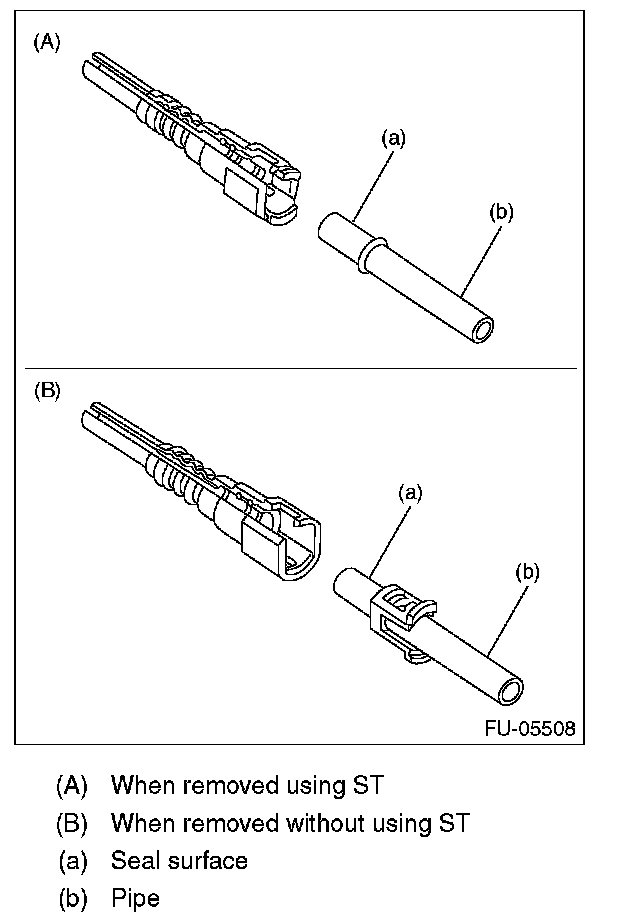 - If the connector and pipe are sticking to each other, push and pull the connector with ST pushed, and then pull the connector after it started moving freely.