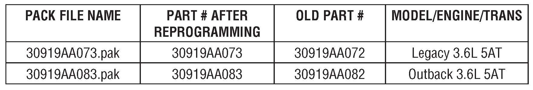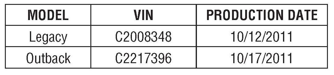 2012MY Legacy and Outback 3.6L, 5AT