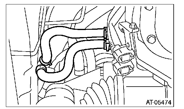 ^ If it is hard to remove the ATF cooler hose, wrap the hose with cloth to prevent from damaging it, and while turning with pliers, pull straight out by hand.