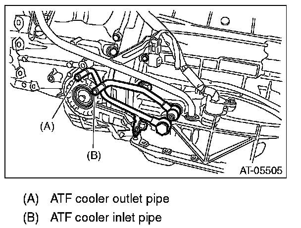 9) Remove the ATF cooler inlet pipe and outlet pipe from the transmission.