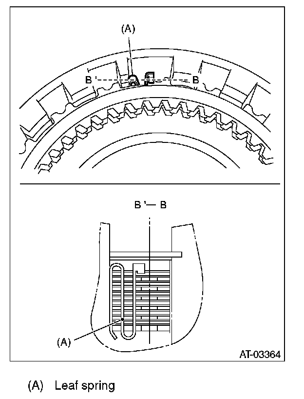 (2) Measure the clearance "B" between the retaining plate and snap ring using a thickness gauge.