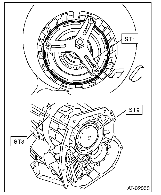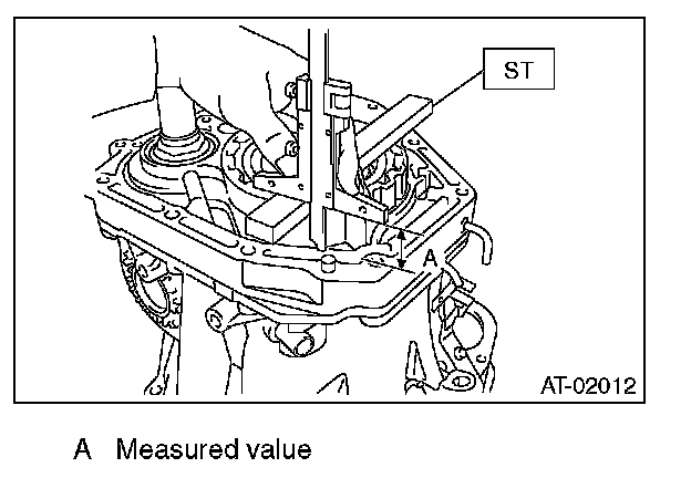 1) Using the ST, measure the height "A" from the AT main case mating surface to convex surface of oil pump cover.