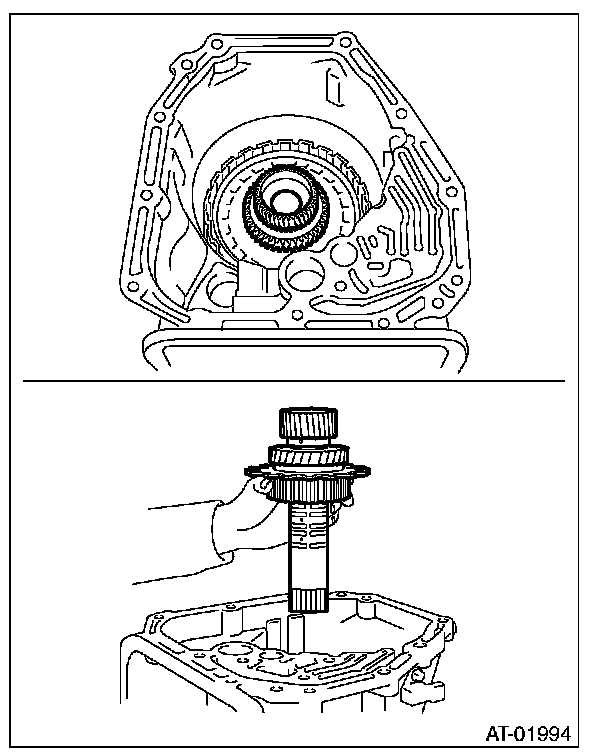(2) Install the oil pump cover to AT main case while supporting the input clutch shaft and oil pump housing with your hand.