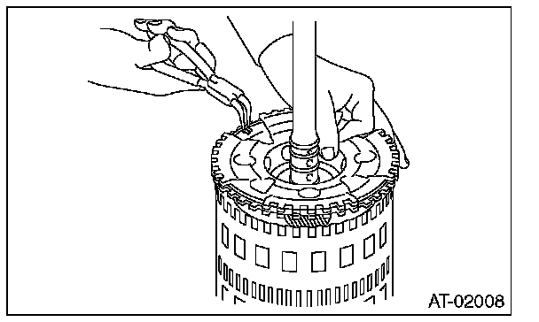 10) Install the snap ring of the reverse brake.