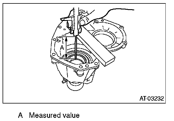 2) Measure the depth "A" from the mating surface of the extension case to the transfer clutch piston.
