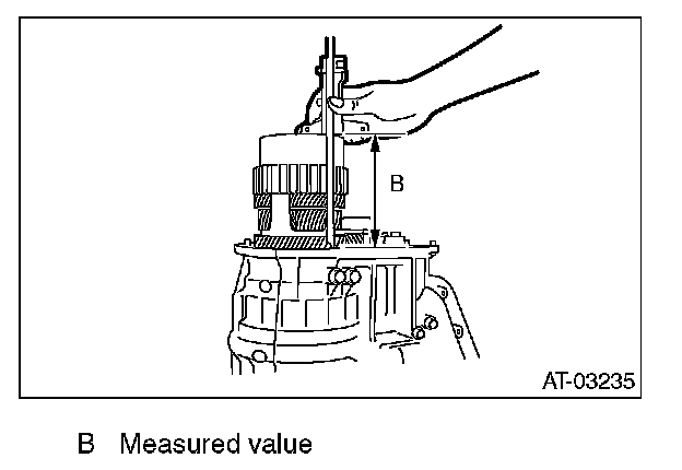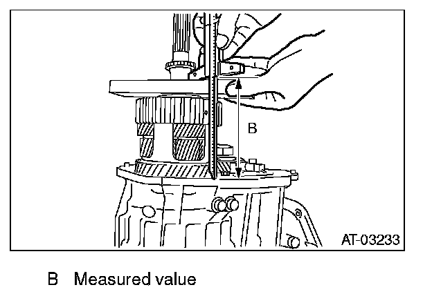 3) Using the ST, measure the height "B" from the AT main case mating surface to ball bearing outer ring contact surface.