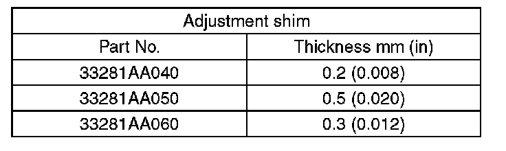 REAR DRIVE SHAFT SHIM SELECTION