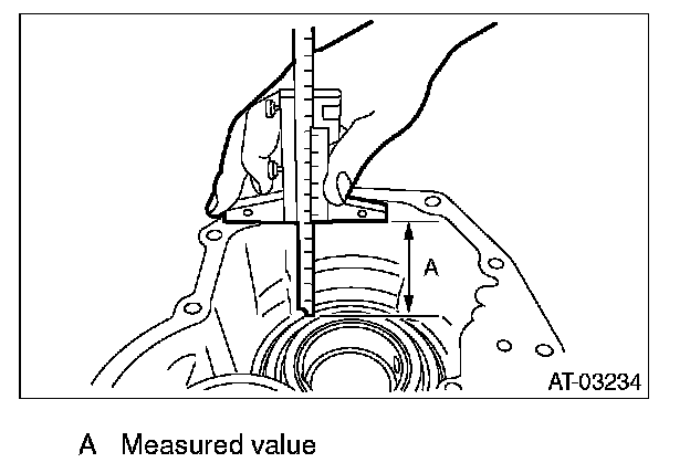 2) Using the ST, measure the depth "A", which is from mating surface of extension case to ball bearing outer ring contact surface.