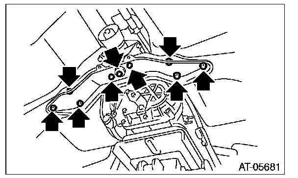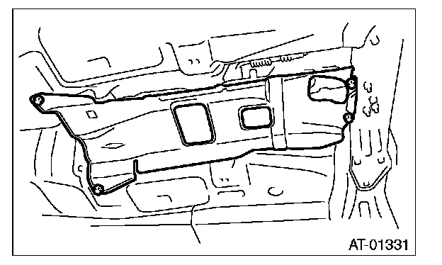 6) Set the transmission jack under transmission. Make sure that the support plate of transmission jack does not touch the oil pan.