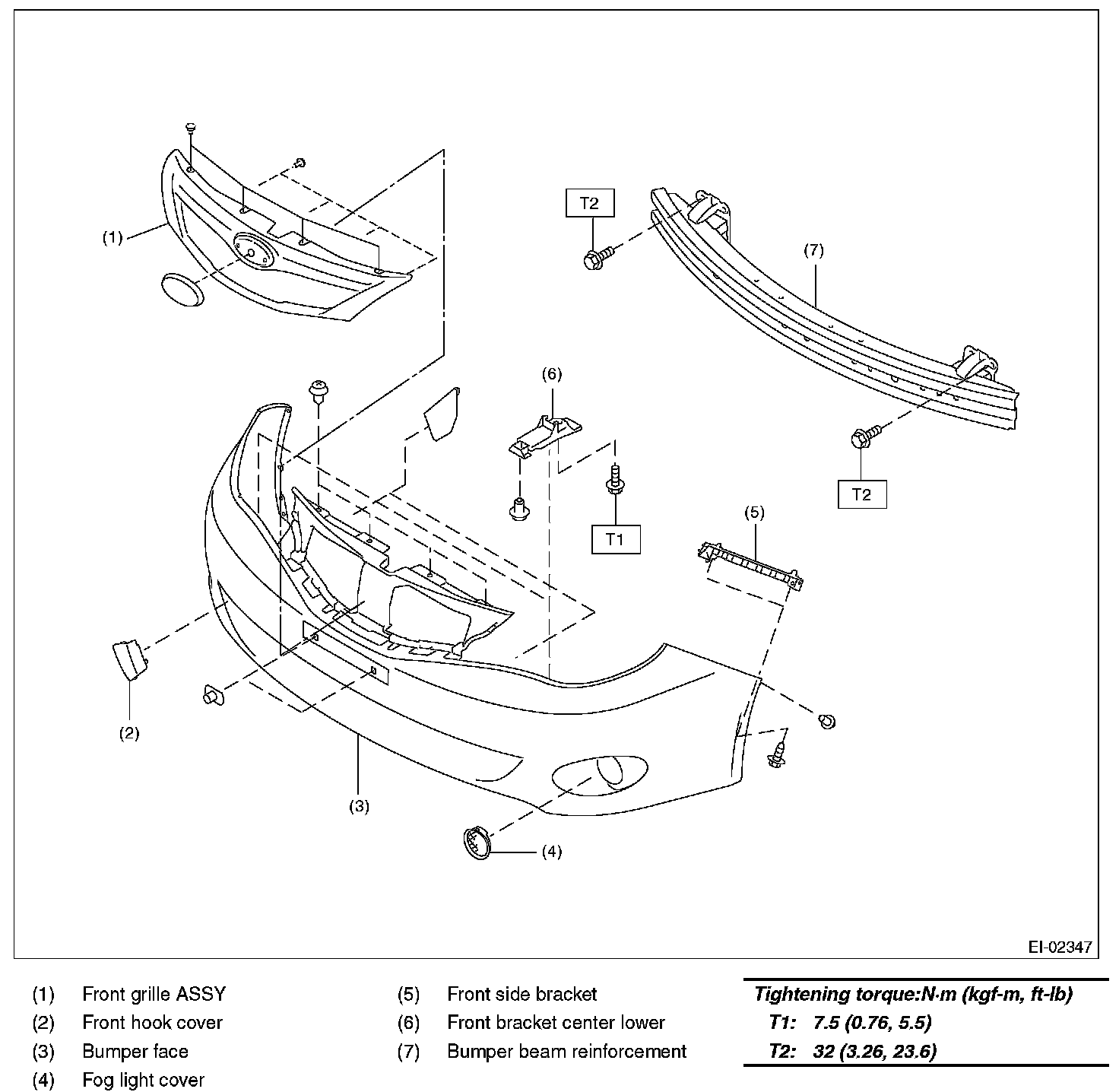 Tightening torque: Refer to "COMPONENT" of "General Description". [Ref. to FRONT BUMPER, COMPONENT, General Description.]