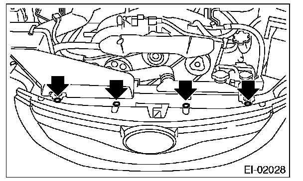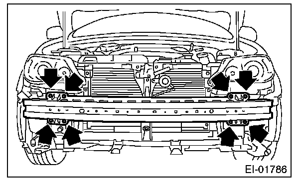 NOTE: After all bolts are removed, raise the whole bumper beam a little to remove it from vehicle body.