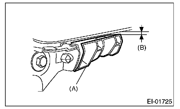 NOTE: Fit the bumper face to the gap (B) between the guide bracket (A) and fender securely.