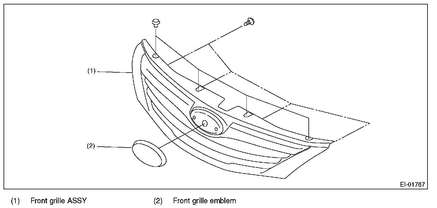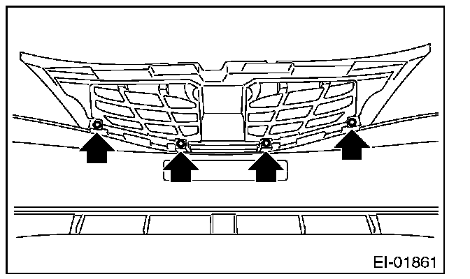 2. Remove the screws from the reverse side of the bumper face, and remove the front grille assembly.