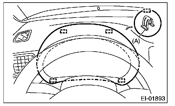 1. Remove the plastic hook (A), and remove the instrument panel side cover LH.