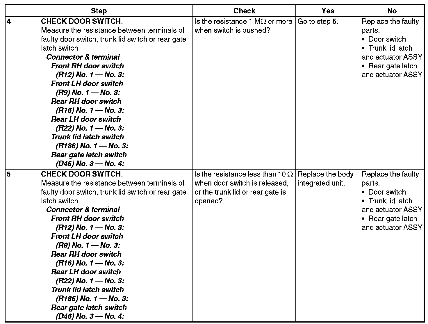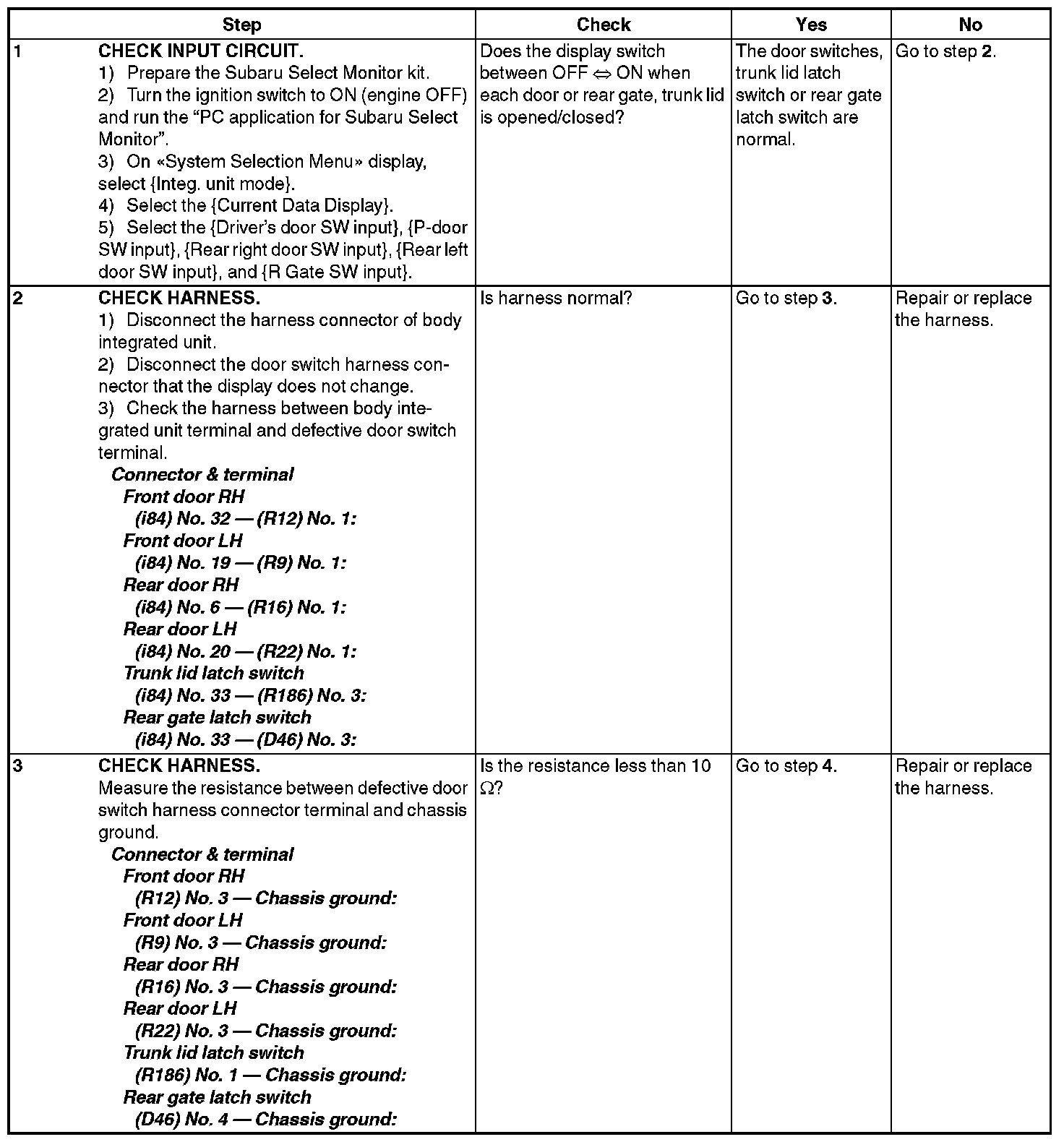 CHECK DOOR SWITCH