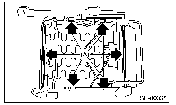 17. Remove the plastic hooks (A) of the seat cushion cover, and then remove the seat cushion frame assembly.