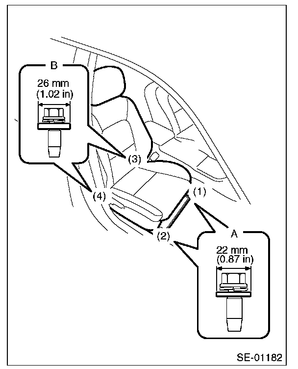 - The seat mounting bolts differ between the front mounting points and the rear mounting points. Make sure that you are using correct bolts at correct positions.