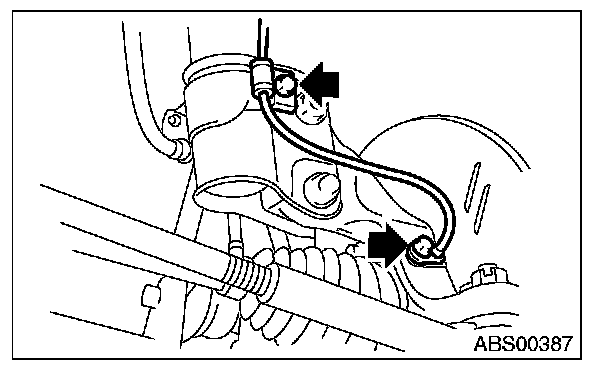 4) Remove the bolts which secure the sensor harness to the front strut.