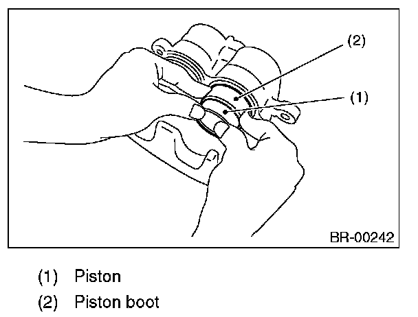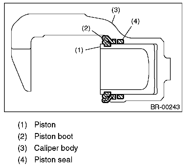 2) Check the caliper body and piston for uneven wear, damage or rust.