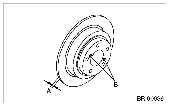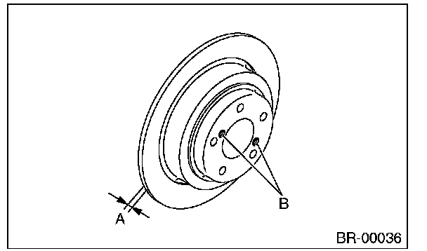(2) If it is difficult to remove the disc rotor from the hub, drive an 8 mm bolt into the threads B of the rotor, then remove the rotor.
