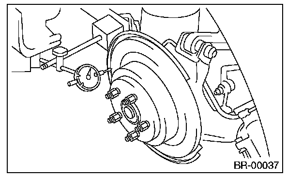 1) Check the rear wheel bearing play and axle hub runout before inspecting the disc rotor runout.