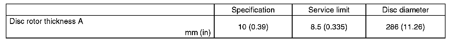 4) Set a micrometer 10 mm (0.39 in) inward from the disc rotor outer perimeter, and then measure the disc rotor thickness. If the thickness of the disc rotor exceeds the service limit, replace with a new disc rotor.